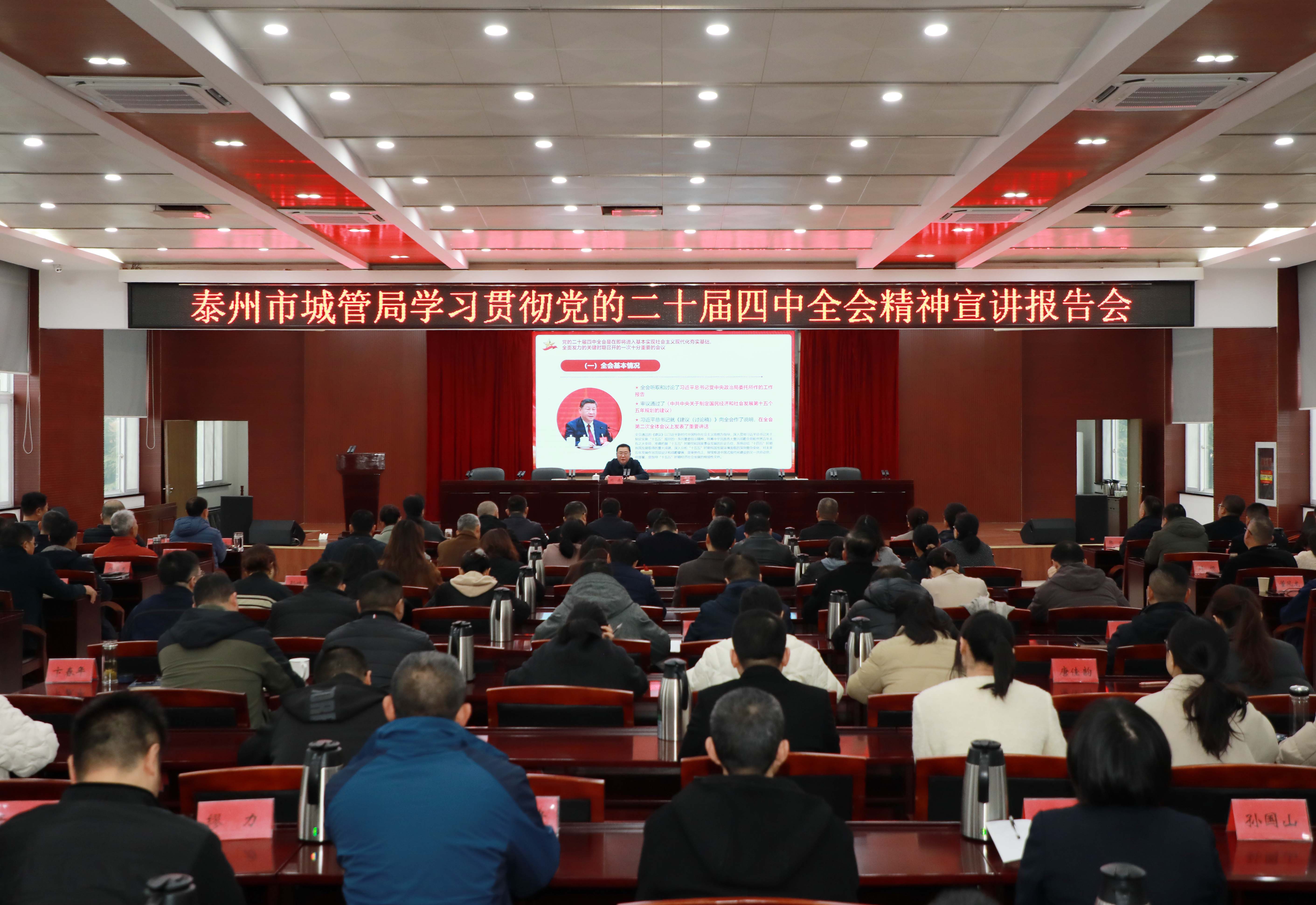 根据市委统一部署,12月2日,市城管局举办学习贯彻党的二十届四中全会精神宣讲报告会。市委宣讲团成员、市委市级机关工委书记刘磊应邀作专题宣讲。报告会由市城管局党组书记、局长孙桂银主持,局党组成员、处级干部,机关各处室、各直属事业单位在职党员干部180余人参加。