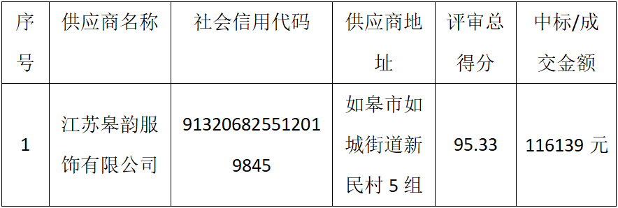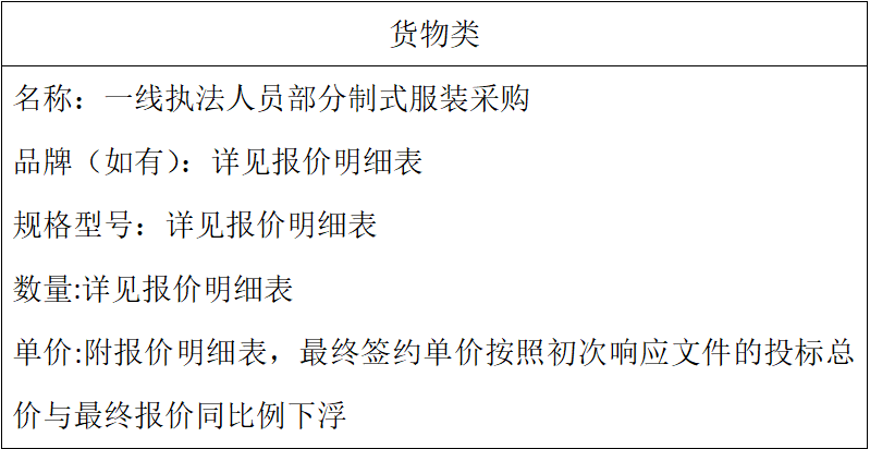 一线执法人员部分制式服装采购成交公告